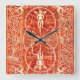 RED WHITE FLORAL SWIRLS AND ANGELS SQUARE WALL CLOCK