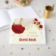 Romantic dark red & white flowers with gold leaves botanical wedding guest book