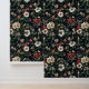 Red & White Flowers on Black for Bedroom Pattern Wallpaper