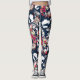 Red, white flowers on blue. leggings
