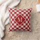 Red White Gingham Check Pattern Chic Monogram Cushion
