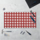 This design features a cheerful gingham check plaid pattern in traditional red and white.