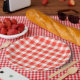 Red White Gingham Pattern Paper Plate