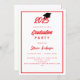 A modern and stylish invitation for a graduation party. For both him and her. White background, red text and a frame. A black graduation cap.