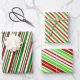 Red, White, Green Christmas-Style Stripes Pattern Wrapping Paper Sheet
