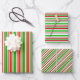 Red, White, Green Christmas-Themed Lines Patterns Wrapping Paper Sheet