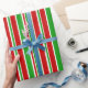 Red, White, Green Christmas Themed Stripes Wrapping Paper