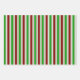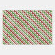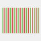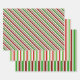 These festive Christmas inspired wrapping paper sheets designs feature stripes coloured red, white, and green. Wrapping paper sheets like these might be used when wrapping gifts or presents being given to celebrate Christmas.