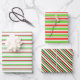 These fun, festive wrapping paper sheets designs feature Christmas and holidays style patterns of stripes having colours like green, white, and red. It might be fun to use wrapping paper sheets like these when preparing gifts or presents being given to celebrate Christmas.