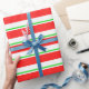 Red, White, Green Coloured Christmas Themed Lines Wrapping Paper