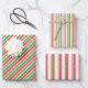Red, White, Green Coloured Christmas Themed Lines Wrapping Paper Sheet