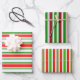 Red, White, Green Coloured Christmas Themed Lines Wrapping Paper Sheet