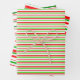 Red, White, Green Coloured Christmas Themed Lines Wrapping Paper Sheet