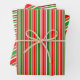 Red, White, Green Coloured Christmas Themed Lines Wrapping Paper Sheet