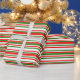 This Christmas-inspired design features a pattern of stripes having colours like red, white, and green. It might be fun to use wrapping paper like this when wrapping presents being given to celebrate a birthday, a wedding, an anniversary, or some other event.