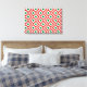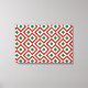 This bold red, green, and white geometric pattern is an original ornamental design perfect for Christmas. Red meanders angle around white diamonds containing small green diamonds. White zigzags provide separation between the winding crimson paths.