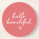Red White Hello Beautiful Inspirational Heart Coaster