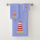 Elegant Red & White Lighthouse Beacon on Sky Blue Towel Set.