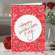 Celebrate your favorite person with this vibrant and modern Valentine's Day card. Featuring a bold red background covered in a playful, multi-font "Love" typography pattern, this design centers on a clean white circle with "Happy Valentine's Day" written in an expressive, hand-drawn brush script. The customizable heartfelt interior message—"Life is better because you're in it"—is sure to make them smile. Personalize the inside message to add your own special memories or names for a truly custom touch. Whether it’s for a long-term partner, a new crush, or a best friend, this card makes a bold statement of affection.