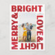 A wash of festive red tones light up this modern text frame holiday card with the wording "Merry & Bright Love & Light." This colourful seasonal postcard features simple and easy to edit family name text and space for your best portrait of the season. Personalise the back with your own custom message and a return address for easy sending.