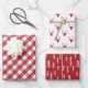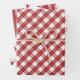Rustic wrapping sheets, perfect for Christmas and bachelor parties and birthdays, with three matching patterns in red and white: plaid, deer, and pine trees.