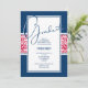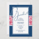 Damask band in red and white bordered in navy blue on these graduation party invitations. SEE ENTIRE COLLECTION of pre-done colours in our store.