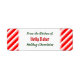 Custom baking labels with red vintage and script letters on a sweet holiday pattern of red and white peppermint candy stripes on a smaller return address label.