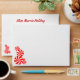 An envelope with your custom return address on the back with script and italic letters, with touches of peppermint candies front and back, and lined on the inside in a background pattern of swirly peppermint candies.