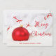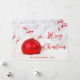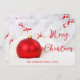 Red and white Personalised Merry Christmas cards with red Christmas tree ball and customisable red text - you can add your family name and year (on front and back page) of the card