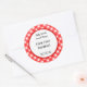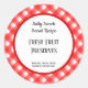Retro restaurant red and white plaid pattern of checks and stripes on custom canning stickers with script and block letters for your name or small business, recipe title and room for ingredients, weight, address, or more information.