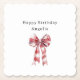 Red White Plaid Stripes Bow Birthday Paper Coaster