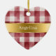 Red White Plaid Stripes Gold Ribbon Christmas Ceramic Tree Decoration
