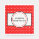 Personalised Family Reunion disposable paper napkins. Personalise with your family's last name in uppercase letters. Click to customise to increase/decrease family name. Fun white polka dots on bright red background with the look of double plates and white napkins. Cheery summertime pattern for get together's with family and friends for picnics and BBQ. Original artwork and design © TamiraZDesigns.
