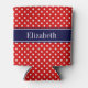 Red White Polka Dots Navy Blue Ribbon Monogram Can Cooler