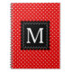 Red White Polka Dots Pattern Black Monogram Design Notebook