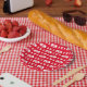This bright red Xmas paper plate with a white Christmas tree and reindeer ornament will make your gifts look festive and cute. The background colour can be changed, just click on "Edit using design tool".