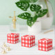 A party favour box with a retro red and white plaid checked pattern. Click Customise It to add your name or message, change sizing, even save your design for later.