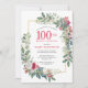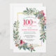 A delicate and festive holiday frame contains red and white roses nestled in holly and eucalyptus leaves. They embellish a thin gold frame. The birthday celebrant's name and birthday year are written in a pretty red. Perfect for a winter holiday birthday party. Easy to customise.