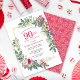 Red White Rose Floral Holly 90th Birthday Party Invitation