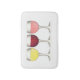 Bath mat design features an original marker illustration of a row of glasses of white, red, and rosé wine. Ideal for a winery or wine enthusiast.