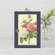 A custom botanical art invitation with red and white roses on faux parchment and deep blue background. This unique version combines two vintage illustrations; Tea Roses and Pink Rose of Orleans. Two colourful butterflies light on the flowers. The names of the roses as well as the artist are written in script at the bottom of the artwork. Click Customise It to change fonts, sizing and more, even save your design for later.