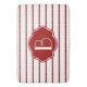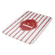 Trendy crimson red & white scalloped-striped bath mat, personalise with your initial on the matching red label.