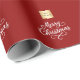 A red background, white text. Merry Christmas is written with a hand-lettered style font. Personalise and add your business logo.