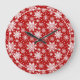 Red & White Snowflake Christmas Classic Pattern Large Clock
