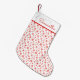 This Christmas stocking features cute red snowflakes on a white background. Personalise it with a name in a red script font at the top.