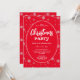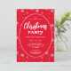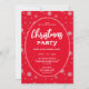 Modern Christmas party invitation with snowflakes pattern on red background with artistic white typography.