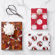 These fun wrapping paper sheets for basketball players or fans feature three individual, complementary patterns -- sheet 1 features a 3D look pattern of varied size basketballs that have two recolored panels -- one red and one white -- overlying the background image of abstractly oversized basketballs - sheet 2 has simple white basketball shapes on customisable red - sheet 3 has a simple mirrored pattern of red and white basketballs on customisable white - by katz_d_zynes