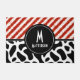Red White Stripe Black White Pattern Monogram Doormat