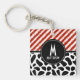 Red White Stripe Black White Pattern Monogram Key Ring