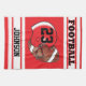 Featuring a bright red background with white jersey stripes and a football and football player's helmet. To complete the design is an area to add a name and sport number which will make the perfect gift for the sport enthusiast in your life. 100% Customisable. Ready to Fill in the box(es) or if you need further customisation, please click the "Customise" button and use our design tool to resize, rotate, change colours, add text and more. Made with high resolution vector and/or digital graphics for a professional print. NOTE: (THIS IS A PRINT. All zazzle product designs are "prints" unless otherwise stated under "About This Product" area) The design will be printed EXACTLY like you see it on the screen and on the product...so please make sure when you do your changes on the resizing of any of the graphics or text that it fits in the areas correctly and that your spelling and wording is how you like it to be in size, colour and font. If you have any questions about the "DESIGN" or need help please contact me at siggyscott@comcast.net or visit my store link: http://www.zazzle.com/designsbydonnasiggy?rf=238713599140281212 (Copy and Paste) I'll be happy to help. All other questions (shipping, refund, the printing, the product, etc...) please contact Zazzle or the Maker directly. Thank you for the support and stopping by my store - DesignsbyDonnaSiggy.